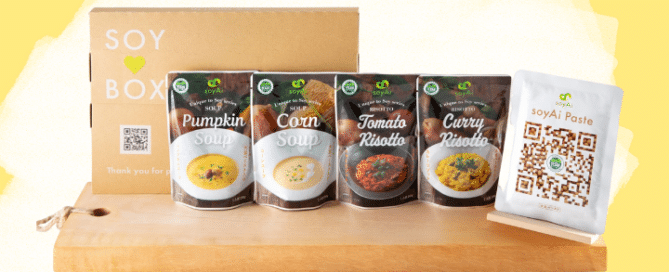 丸ごと大豆ペースト「soyAiペースト」を使ったヴィーガンスープとリゾットをご紹介。「コーン」「パンプキン」のスープと、「トマト」「カレー」のリゾットです。どれもヴィーガン認証を取得していて、簡単に調理できるので朝食や忙しい日にもぴったりです。美味しさはもちろん、食物繊維や大豆たんぱく、ビタミンなど栄養満点です。