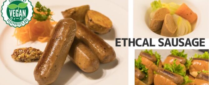 「食生活が、地球環境を守る」をテーマに、Meatless Dietを提唱するエシカルフード社のエシカルソーセージとエシカルバーグ。どちらも食物繊維豊富な蒟蒻と大豆を主原料にした100%植物由来のプラントベースミートでできています。ヴィーガンの方はもちろん、健康・ヘルシー志向の方にもおすすめのヴィーガン認証商品です。