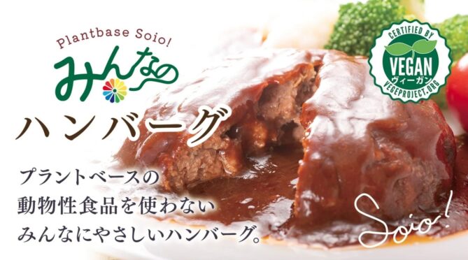さつま揚げの製造販売を行う(株)シュウエイから、プラントベースのレトルト商品「Soio!みんなのハンバーグ」が発売。濃厚な「デミグラスソース」とクリーミーな「ホワイトソース」の2種類の展開で、どちらもベジプロジェクトジャパンのヴィーガン認証を取得しています。マクアケでは現在先行販売が行われ、お得に購入できます。