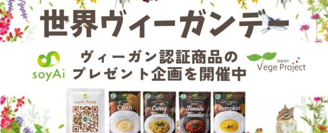 11月1日の世界ヴィーガンデーを記念したヴィーガン認証商品のプレゼント企画が開催中です。実施しているのはヴィーガン認証取得の大豆ペースト「soyAi」とベジプロジェクトジャパンのInstagram公式アカウント。両アカウントをフォローして所定のキーワードをコメントすれば応募完了です。先着111名に当たります!