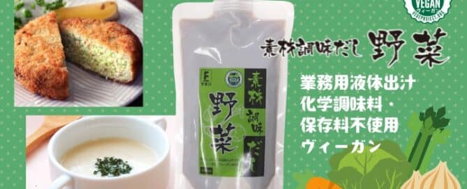 新潟県で創業70年余りの出汁メーカー、フタバの業務用製品「素材調味だし 野菜」をご紹介!ベジプロジェクトのヴィーガン認証取得商品。希釈タイプの液体出汁のため使用方法はとても簡単で、効率よく野菜の旨味が引き出された料理を作れます。ヴィーガンメニューを提供していたり、今後提供したいという飲食店やホテルの方は要チェック。