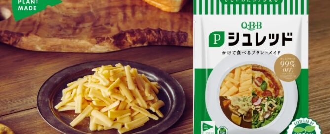 Q・B・Bでお馴染みの六甲バター株式会社が展開するプラントベースブランド「Q・B・B PLANT MADE」。昨年登場した業務用の植物性チーズの家庭用サイズ「Pシュレッド」が新発売!ベジプロジェクトのヴィーガン認証商品。いつものお料理にアーモンドベースのまろやかなコクを加えられるでしょう。スーパー等で見つけてください!