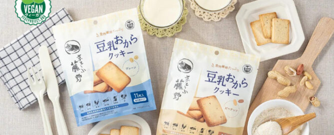 MDホールディングスと京とうふ藤野とのコラボにより誕生した『豆乳おからクッキー プレーン』と『豆乳おからクッキー ピーナッツ』が3/1に新発売。廃棄予定のおからと湯葉のくみ上げで残った豆乳を活用したアップサイクル商品で、環境に配慮。香ばしく、どこか懐かしい味わいとともにサクッとした食感が楽しめる美味しいクッキーです。