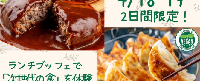 4月18ー19日に渋谷のランチビュッフェで「次世代の食」が体験できる!大豆を主原料とした代替肉が多い中、ここで提供されるベジプロジェクトによるヴィーガン認証取得の「肉超ハンバーグ」「肉超餃子」には、栄養価が高くてヘルシー、もちもちとした食感が特徴的な「たかきび」が使用されています。地球にも人にもサステナブルなメニュー。