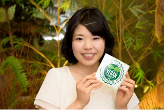 Photo: ヴィーガン認証マークを手にするNPO法人ベジプロジェクトジャパン川野陽子代表